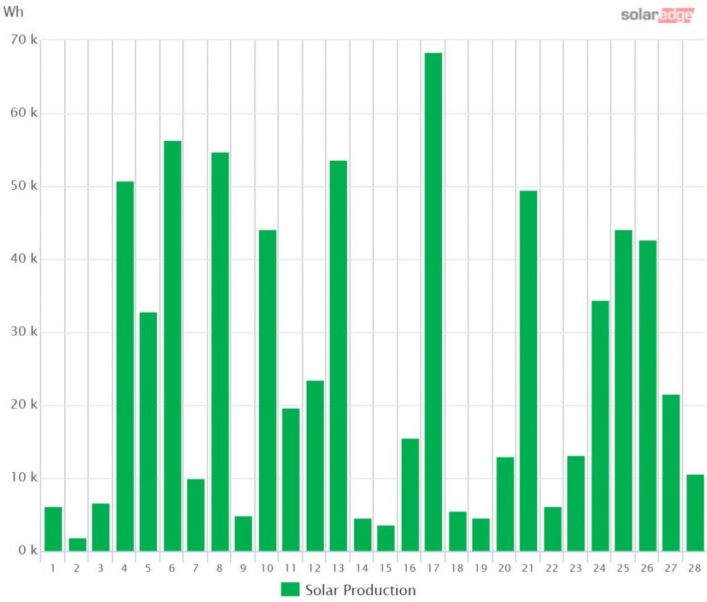 Poly-crystalline solar cells consist of many different smaller silicon crystals which are connected to each other. Their efficiency is slightly lower than in the mono-crystalline cells.